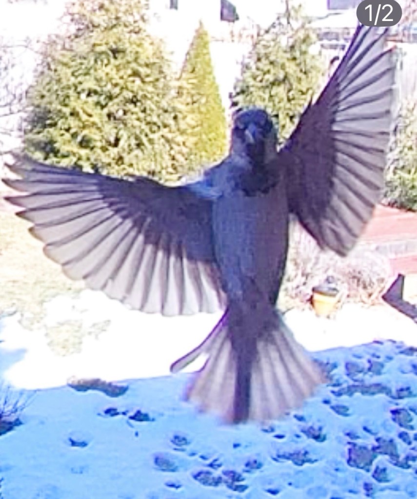The camera also inspires stories. The photographs captured by the birdfeeder camera are often scenes from real-life human (I mean bird) drama. The birds land and fly away, jockey for position, tweet and squawk at each other, box out, rebound, defend, and dine peacefully. All walks of life. All colors and colorful personalities. I feel like the birds want me to write their stories, although not all of them would agree, I suppose, with my interpretation of the facts.