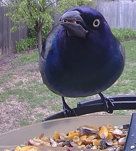 How ’bout I buy you big sunflower seed?No, I’m not hiding anything behind my back!Humans are wrong, I am sooooo cute!Grackles like birdfeeders, too!Cheeheeheeheehee, I got the best one!
