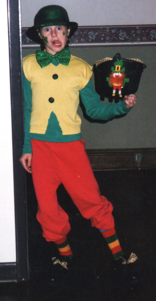 Throughout the year, Mack was always happy and ready to play the role of our family leprechaun. One year for Halloween she even dressed herself for the part. After school, she went into her bedroom to prepare for trick-or-treating, disappearing with a tub of holiday props I kept underneath my bed. When she emerged, she was wearing what I think is the best Halloween costume she ever had. It was so damn good, in fact, that I was not even mad that she had cut up a perfectly good shirt to make the vest. That night, she skipped and jigged through our neighborhood, collecting her candy and having a blast.