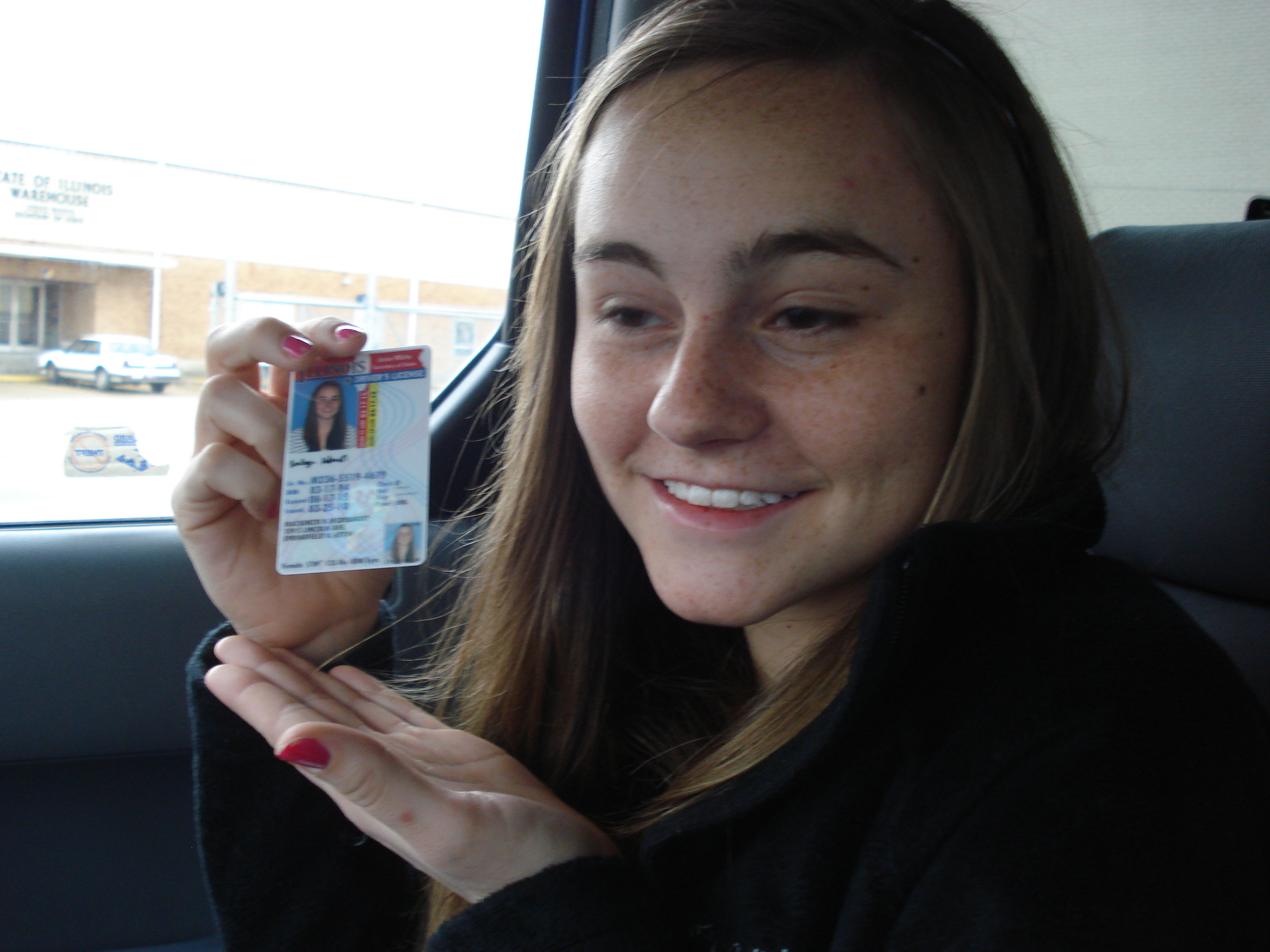 In these photos, Mack proudly displays her driver’s license, you can see for yourself the silly string baked into the Jeep’s paint, and Mack is saying goodbye to her parents after a visit to Truman State to see her…