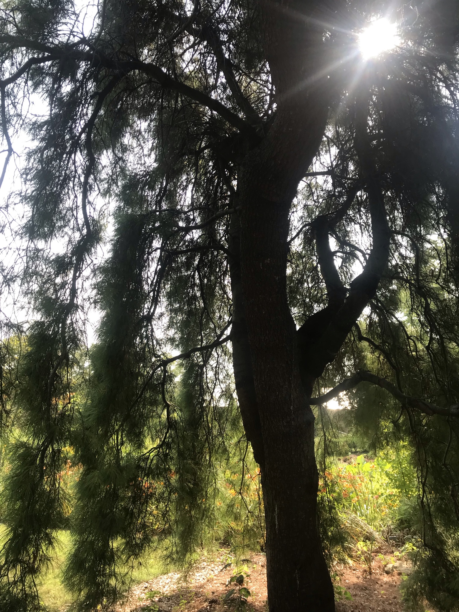 The planets do not align for our singular benefit, but sometimes we do win the universe’s lottery. In fact, I find it to be mostly true that the elixirs and balms that have helped me to survive my grief have found me when I wasn’t looking. It is no surprise to me that I would find my new spirit place by happenstance. That at yoga one Friday morning at the end of summer I would meet a woman, and that the yoga teacher would introduce us and tell her I was new to the area. That the woman would give me her docent elevator pitch for The Whiteside Garden. That I would venture out into a dangerous heat wave to visit the garden later that morning. That a weeping white pine would greet me like I had known her my entire life. That I would stand under her gentle branches, sheltered in the impossible coolness beneath them, and know that my spirit was home.