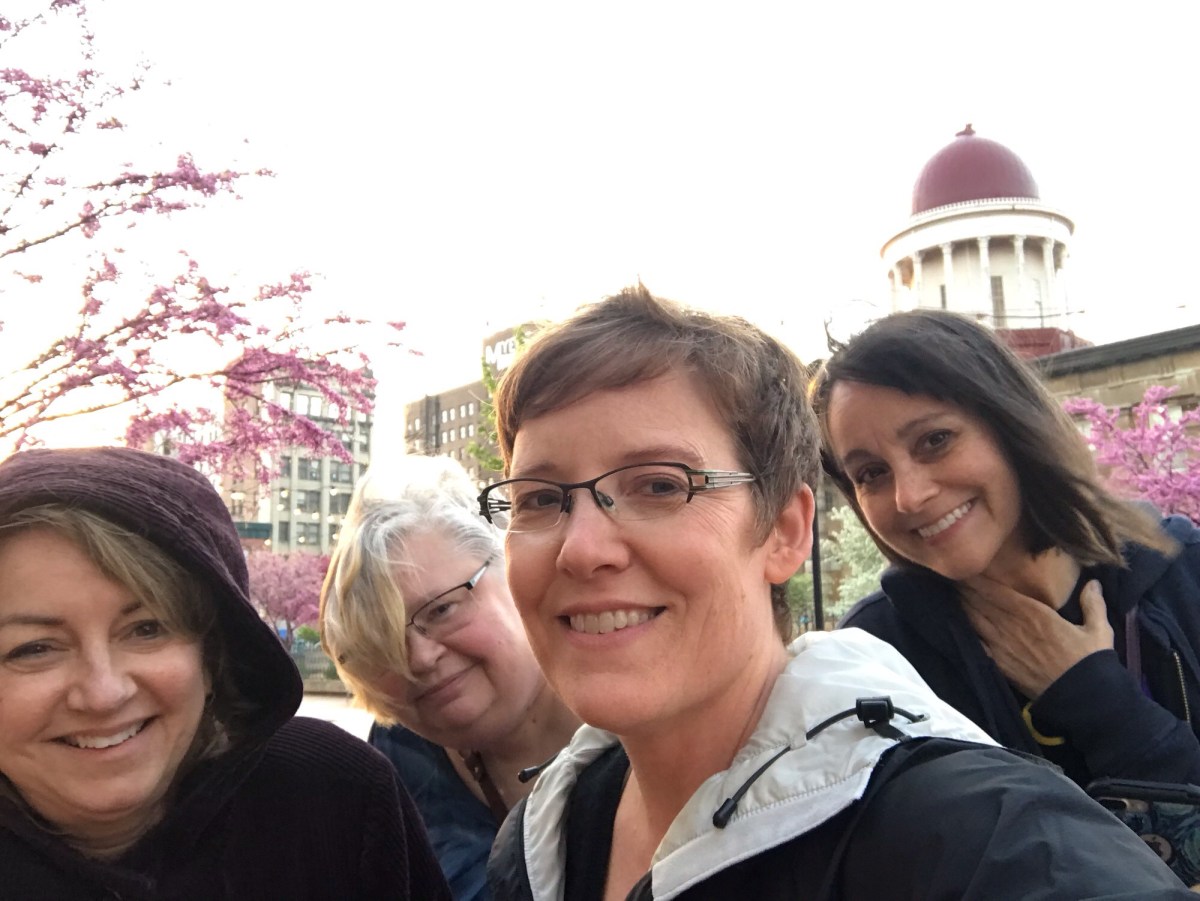 Alicia, Maureen, Sandra, and me downtown after the trip to Oak Ridge